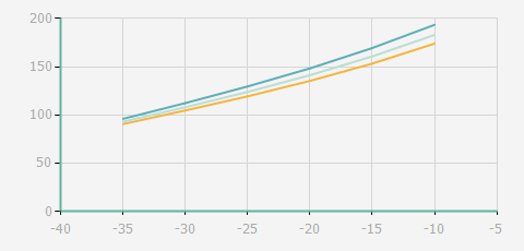 | 蒸發(fā)溫度 | 制冷量+/-5% | 能耗+/-5% | 現在能效+/-5% | 氣體流速+/-5% | 能效+/-7% | ||||