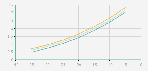 | 蒸發(fā)溫度 | 制冷量+/-5% | 能耗+/-5% | 現(xiàn)在能效+/-5% | 氣體流速+/-5% | 能效+/-7% | ||||