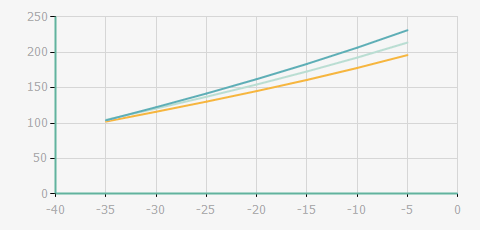 | 蒸發(fā)溫度 | 制冷量+/-5% | 能耗+/-5% | 現(xiàn)在能效+/-5% | 氣體流速+/-5% | 能效+/-7% | ||||